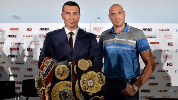 On October 24, in Dusseldorf, Fury will challenge Wladimir Klitschko for the WBA, IBF and WBO heavyweight titles, which Klitschko has held since beating David Haye in 2011; he first won the WBO title in 2000.